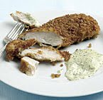 3. Combine bread crumbs, parsley, salt, pepper, and zest in a second wide, shallow dish. Dip chicken in egg whites, then into crust mix. Let chick rest on a rack in the refrigerator 20-30 min to set crust.