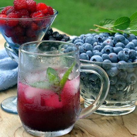 Combine the strained berry juice and the ice water then stir in the honey.