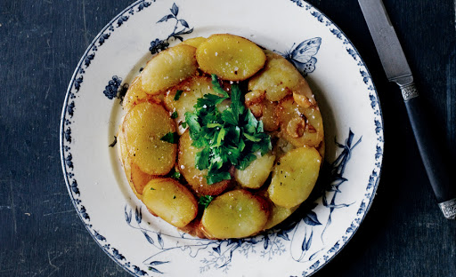 - small Yukon Gold potatoes, peeled, sliced 1/4” thick