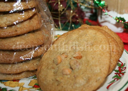 Slowly add contents of jar and mix well. Drop by rounded teaspoonfuls onto greased cookie sheet.