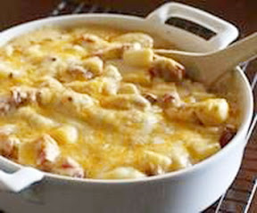 Combine the sauce with the potatoes and the sausage mixture. Stir gently to blend. Transfer to the baking dish and sprinkle the remaining 1/2 cup of cheese over the top.