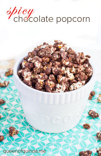 4.Drizzle the chocolate sauce over the popcorn-nut mixture and gently mix all the ingredients together. I think it would be easiest to use your hands, but a wooden spoon or spatula would also work.