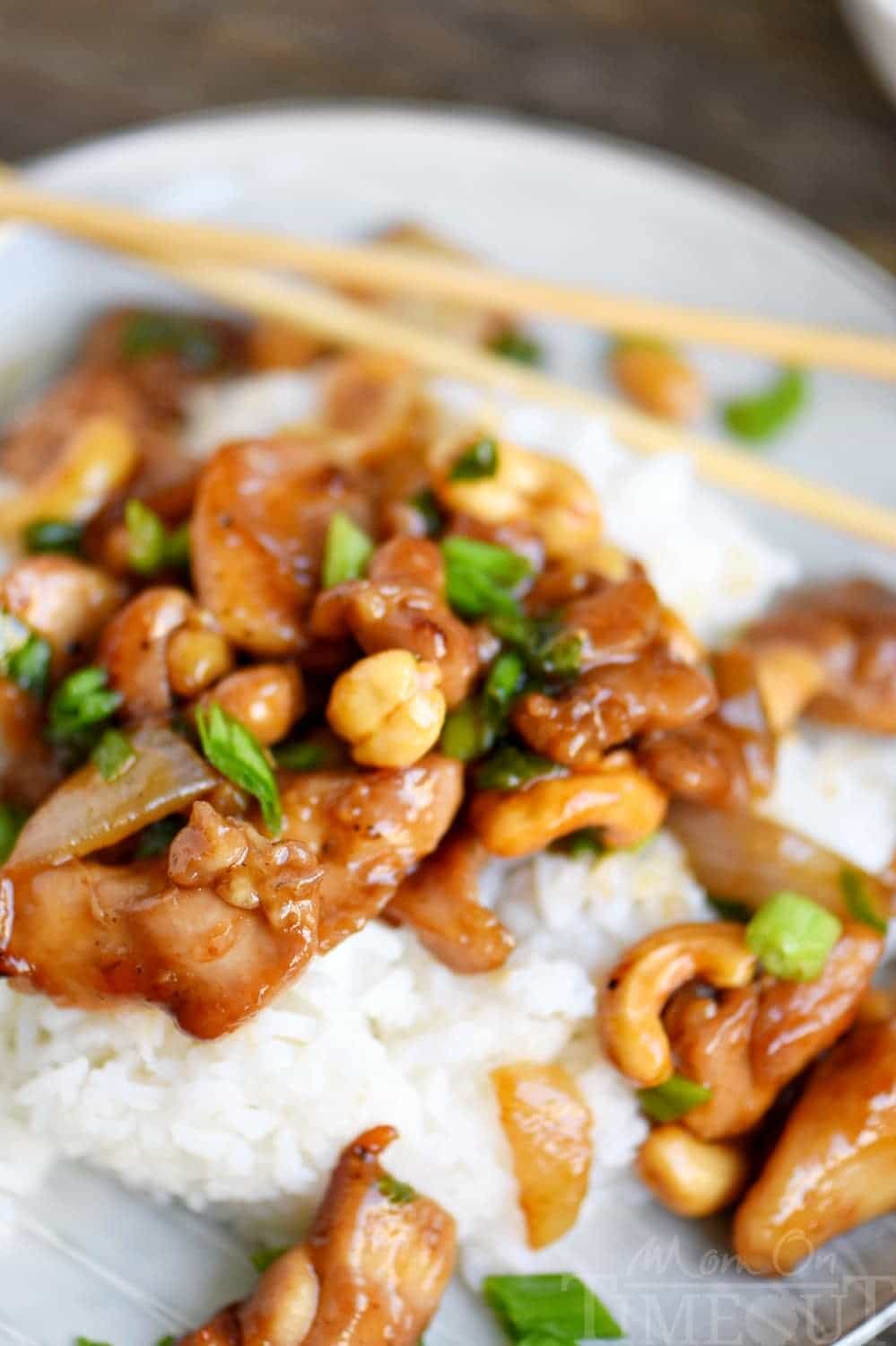 Love quick and easy dinner recipes? This one is for you! This Easy Cashew Chicken takes less than 30 minutes to make and is way better than takeout! Add it to your menu this week!