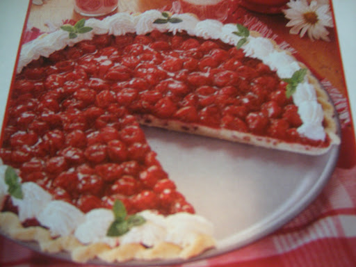In a mixing bowl, beat cream cheese and sugar till smooth. Beat in eggs and vanilla. Stir in nuts. Spread over crust. Bake 10 mins. longer. Cool. Drain cherreis, reserving 1/3 c. juice. Set cherries and juice aside.