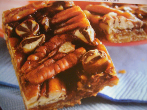 Spread caramel topping over crust. Sprinkle w/ pecan halves and chocolate chips. Bake 20-30 mins. longer or till caramel is bubbly. For bars, cut into 6 x 6 rows.