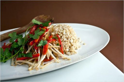 STIR FRIED BEAN SPROUTS w/SPROUTED RICE