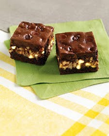 Stir in semi-sweet morsels. Spread evenly over caramel topping.