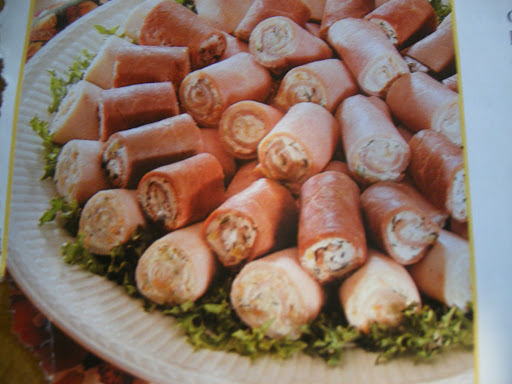 In another bowl, combine cream cheese, carrot, zucchini, and dill. Spread about 2 tbsp. on each slice of ham and turkey. Roll up tightly; wrap in plastic wrap. Refrigerate overnight. Slice into 1 1/2" pieces.