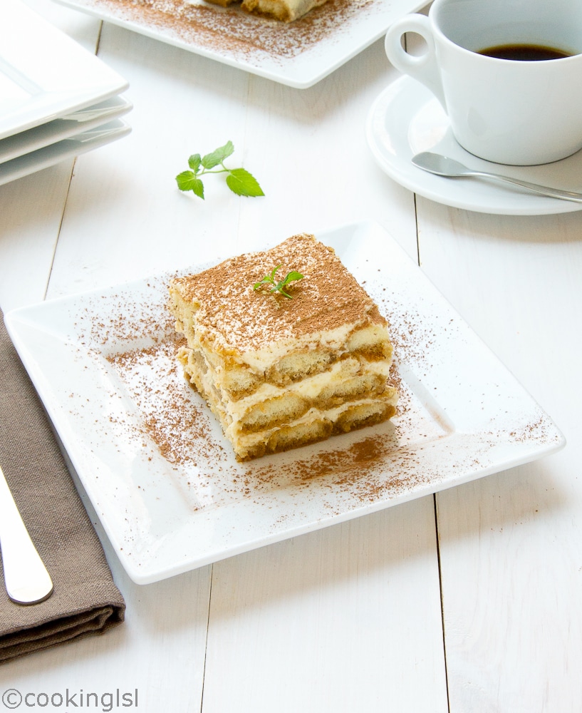 Layers of lady fingers cookies, dipped in flavorful espresso coffee with rich and velvety mascarpone cream in between. Topped with cocoa powder for this extra touch.