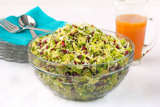 Avocado Shaved Brussels Sprout Salad with Honey Ginger Vinaigrette