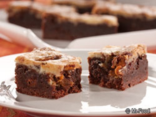 • 1/2 cup chopped chocolate-coated caramel-peanut nougat bars