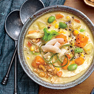 - Toppings: toasted coconut, green onions, peanuts, lime wedges