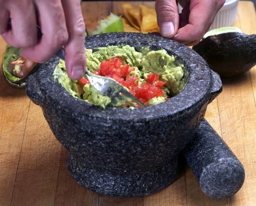 I mash garlic and salt to a paste, then add minced shallot (yes shallots!). Then I add lime juice.This is one of those great all-purpose techniques I use in many preparations, from mayo to vinaigrettes. First, the juice dissolves the salt so that it can distribute easily throughout the creamy or fatty environment (salt has a hard time dissolving in fat). But most important, macerating the garlic and shallot in acid for ten minutes eliminates all their harsh qualities, leaving only their sweetness and flavor. (If you don’t have a mortar and pestle or the traditional molcajete, you can mash the garlic with a knife of put it through a press—I don’t have a problem with garlic presses if you remove the germ first. Then add salt shallot and lime juice.)