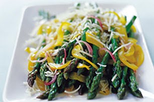 - 1/2 cup Kraft Signature Classic Herb Dressing, divided 1 small yellow pepper, cut into strips 1 small red onion, thinly sliced 1 lb. (450 g) fresh asparagus spears, trimmed 1/4 cup Kraft 100% Parmesan Light Grated Cheese