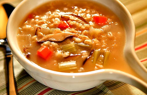 3. Reduce the heat to a gentle simmer, loosely cover and continue to cook for about 2 hours, until the barley is tender and the flavors are developed. Add additional water or broth to the soup to thin as desired, and season to taste with salt and pepper. This makes about 1 quart soup.
