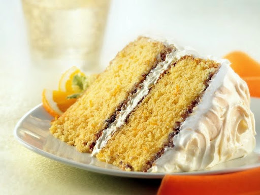 5 In large bowl, stir all frosting ingredients until well blended. Place 1 layer, crumb side up, on serving plate. Spread with 1 cup frosting to within 1/4 inch of edge. Add second layer, crumb side up. Frost side and top of cake with remaining frosting. Garnish with orange slices. To serve, cut cake with serrated knife. Store covered in refrigerator.