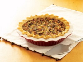 2.Mix coconut, chocolate chips and pecans in a medium bowl; sprinkle over bottom of pie crust. In same bowl, combine corn syrup, sugars, butter and eggs until well blended. Pour over coconut mixture.
