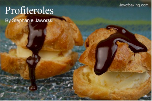 To Assemble: Split the pastry shells in half, fill the bottom halves of the shells with a scoop of vanilla ice cream, and replace the top. Drizzle each profiterole liberally with warm chocolate ganache. Serve immediately.