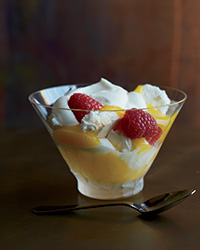 To serve, break the meringue into small pieces. Spoon half of the meringue and 1/4 cup of lemon curd into each of 8 parfait glasses. Top with 1/2 cup of whipped cream and a few raspberries. Repeat with the remaining meringue, lemon curd, whipped cream and raspberries. Serve immediately.
