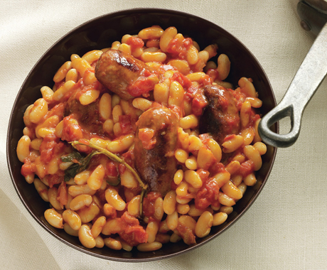 Add 1/2 cup reserved bean cooking liquid, tomatoes with juice, and sage.