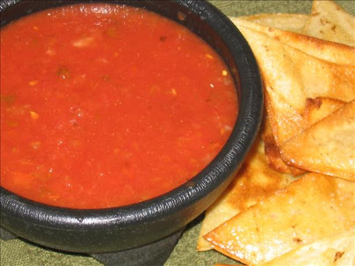 It's Super Bowl Sunday and we are just having a family party so I'm just throwing stuff together. I just made it and it's sitting in the fridge. I had to try it right away though and it was good. I'm sure it will only get better as it chills. Even though I ate Chili's Chips and Salsa along with their top shelf margarita :) (and I LOVED it) all the time in college it's been awhile since I've had it so I don't remember what it was like. Update: Made it again (Aug. 2006) with tomatoes from the garden instead of the can of whole tomatoes. Much better. Will be making again and again.