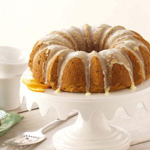 In a small bowl, whisk the confectioners' sugar, orange peel and enough juice to achieve desired consistency. Drizzle over cake.