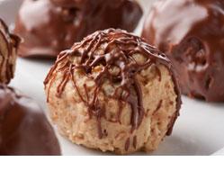 In a medium bowl, stir together peanut butter, confectioners' sugar, butter, and pretzels. Roll into 1-inch balls and place on prepared baking sheet.