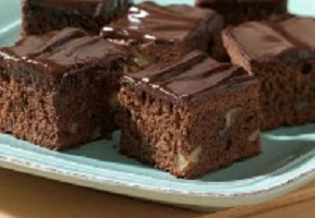 3.To make Chocolate Glaze: Melt chocolate and butter in a small saucepan over low heat. Remove from heat and stir in corn syrup, milk, and vanilla beating until smooth. Pour over brownies. Cool 1 hour; cut into squares.