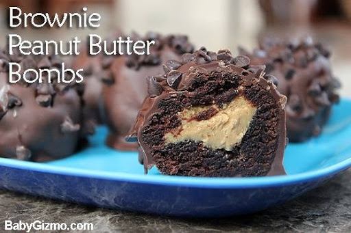 6. Place a peanut butter ball in the middle of the flattened brownie & very gently wrap the brownie around the peanut butter ball. Don't worry if the brownie starts to break or crack or the peanut butter oozes out the sides. No big deal! Just roll it around in your hands until the brownie completely surrounds the peanut butter ball the best you can. Repeat with remaining brownie squares & return to the freezer for 30 mins.