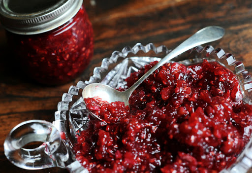 2. In a large heavy pot, bring cranberries, raspberries, sugar, lemon juice and zest to a boil. Remove from heat, pour into a ceramic or glass bowl, then cover and refrigerate overnight. If not canning, add pecans and serve.