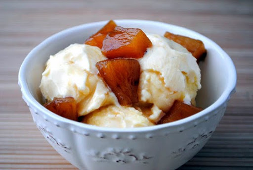 7. Serve the warm pineapple chunks over scoops of Toasted Coconut Ice Cream.