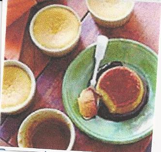 To serve, run a knife around the edge of each flan and invert into shallow dessert bowls.
