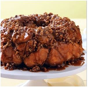 Notes from reviewers: *I did use about 2 cups sugar and 2 teaspoons of cinnamon and sugar instead of what the recipe calls for though. I think it was good that I had to make a fresh batch of cinnamon and sugar because the first batch was getting sticky from the butter. I will say that you definately need something larger than a bundt cake pan to hold everything. I will also be using a large platter to put this on rather than a plate as the caramel just oozed out once I inverted the pan and got everywhere.