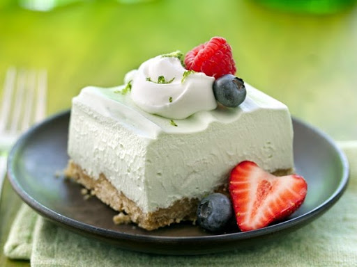 To serve, cut into 5 rows by 4 rows. Garnish each serving with a dollop of remaining whipped topping, lime peel and fresh berries. Cover and refrigerate any remaining dessert.