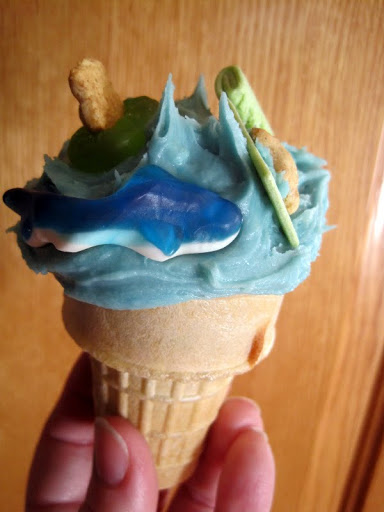 Fill each cone about half full of batter. Stand cones in muffin pan.