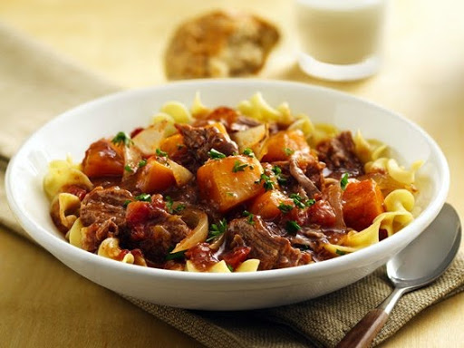 4 Stir tapioca into liquid in cooker. Return shredded brisket to cooker. Increase heat setting to High; cover and cook about 15 minutes longer or until thickened. Serve stew in soup bowls over hot noodles..