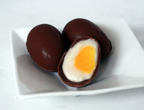 To make actual hollow eggs with the filling inside, you'll need to acquire some egg molds. Alternatively, you can form the filling and dip it in the chocolate. If you choose the dipping method, you may consider adding 2 teaspoons of non-hydrogenated vegetable shortening to the chocolate to thin it and make it easier for dipping.
