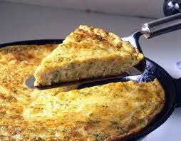 Add the egg mixture to the skillet and stir gently to combine. Allow the eggs to set up on the bottom of the pan and become firm. Top with the leftover tomato sauce and top that with the cheese. Transfer pans to oven and bake 10 minutes, until golden. Serve from the pan or transfer to a platter, hot or cold, cutting frittata into wedges. If it’s for lunch or dinner, serve with a simple salad