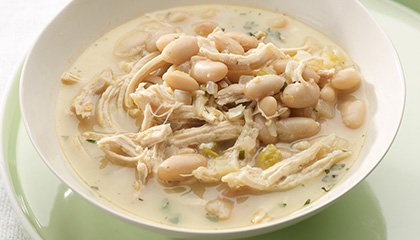 Add beans, chilies and broth and bring to a boil. Reduce heat to medium-low and simmer, covered, for 30 minutes.