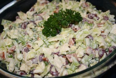 Whisk together the 5 dressing ingredients and pour this over the salad mixture.
