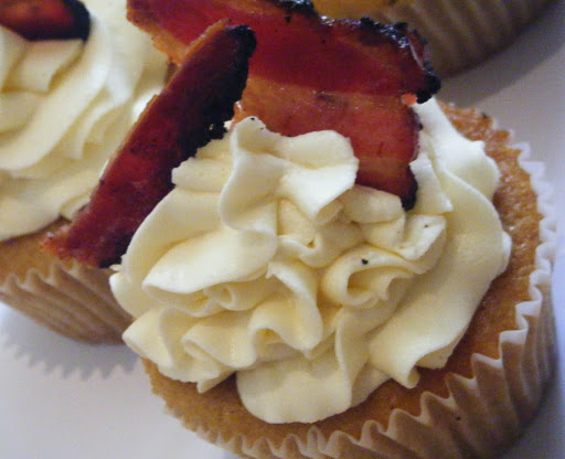 "These cupcakes are fantastic, they are so soft, moist, light and have the most amazing maple flavor. I have been wanting to try some Maple Bacon Cupcakes for ages and I'm really please they have come out so well. I used my own Maple Buttercream recipe, for preference but have provided the frosting recipe that originally came with the cupcakes. There is no bacon in the actual cake, I just topped the cupcakes with shards of maple smoked bacon. I was also going to drizzle the cupcakes with maple syrup to finish but the maple flavour of the cupcakes and frosting was perfect so I didn't want to over do it. I am a huge fan of American pancakes soaked in maple syrup, with a side of bacon. That being said I still wasn't sure I would be that into the maple bacon cupcake. I have however been totally won over and think the bacon makes these cupcakes! The combination of salty and sweet, maple and bacon is perfect and I know I will be making these again very soon. You could of course leave the bacon off, the original recipe does and these cupcakes will still be amazing."