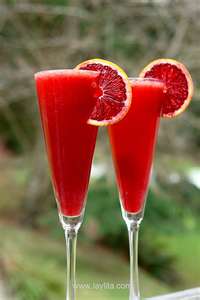 Sweet, deeply colored blood orange juice combines with Cointreau and refreshing Champagne to make a delicious cocktail.