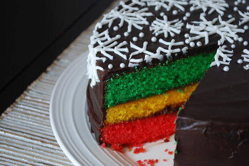 Pour each color of the mixture into individual pans making sure to smooth out the top. Bake at 350°F for approximately 20 to 25 minutes or until a cake tester inserted into the center comes out clean. Remove from the oven and let cool for 5 minutes before inverting onto a cooling rack. Remove the parchment paper and let cool completely.