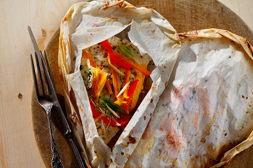 * *Serve* in the papillotes in shallow bowls with garlic toast or bread to sop up the juices.