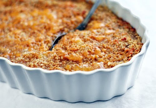 3. In a casserole or baking dish, layer the pineapple mixture, cracker crumbs, butter and cheese. Repeat until you have three to four layers. Sprinkle the remaining 1/4 cup cheese on top of the casserole.