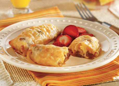 Need a delicious brunch recipe? Try these baked egg rolls filled with egg, sausage, cheese and hash browns. This recipe makes about 30 rolls but can easily be cut in half.