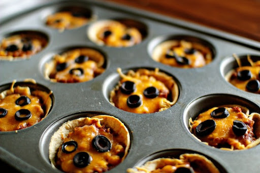 Wait for mini Mexican pizzas to cool, and remove from muffin tin using a fork or knife. Pizza’s should pop out with ease!