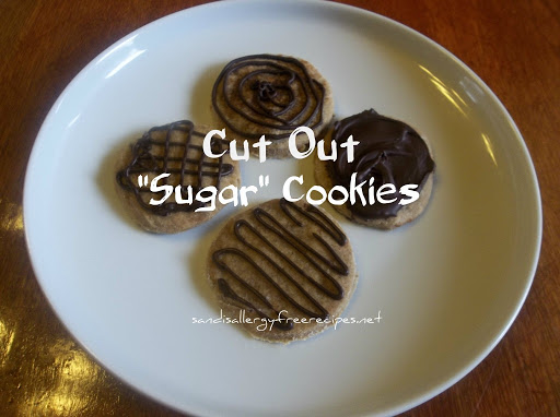 Then dust a piece of parchment paper with a little bit of rice flour, put the dough on top(I usually do half the dough at a time and leave the other half in the fridge until I’m ready to use it). Put a little more flour on top of the dough and another piece of parchment paper. Roll dough out to about a 1/4 of an inch thickness.After dipping the cookie cutter in flour, cut out desired shapes and place the on a cookie sheet.