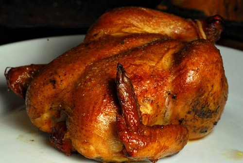 2. Pour the remainder over hens and marinate for 6 to 8 hours in the refrigerator.