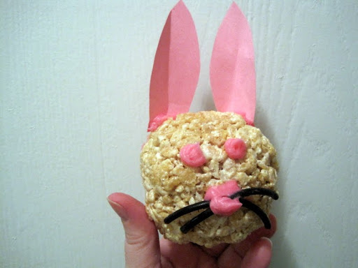 4. Use frosting to attach two balls together, forming bunny body and head. Repeat with remaining balls. Use frosting to attach paper ears. Decorate wtih frosting and/or candies for eyes, mouth, whiskers and tail. Best if served same day.